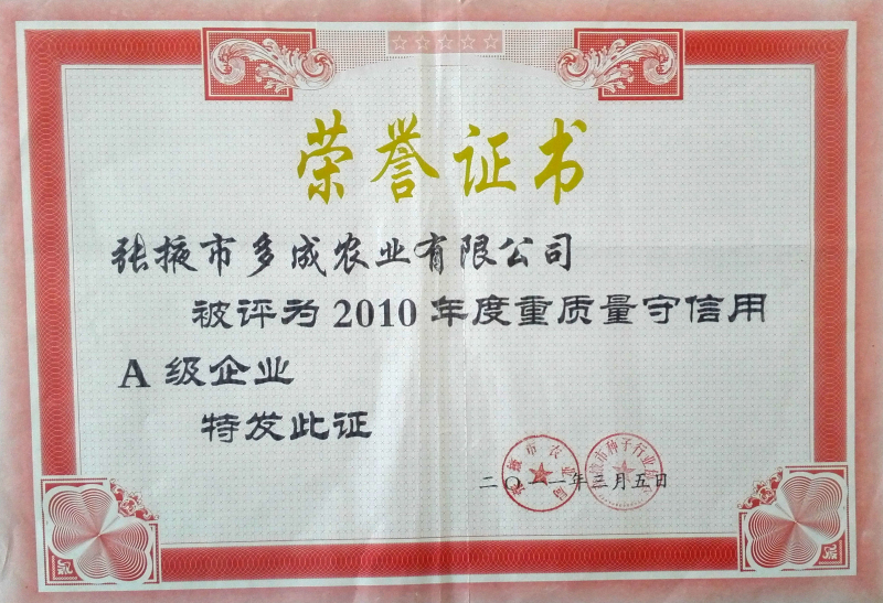 2010年重質(zhì)量守信用A級(jí)企業(yè)